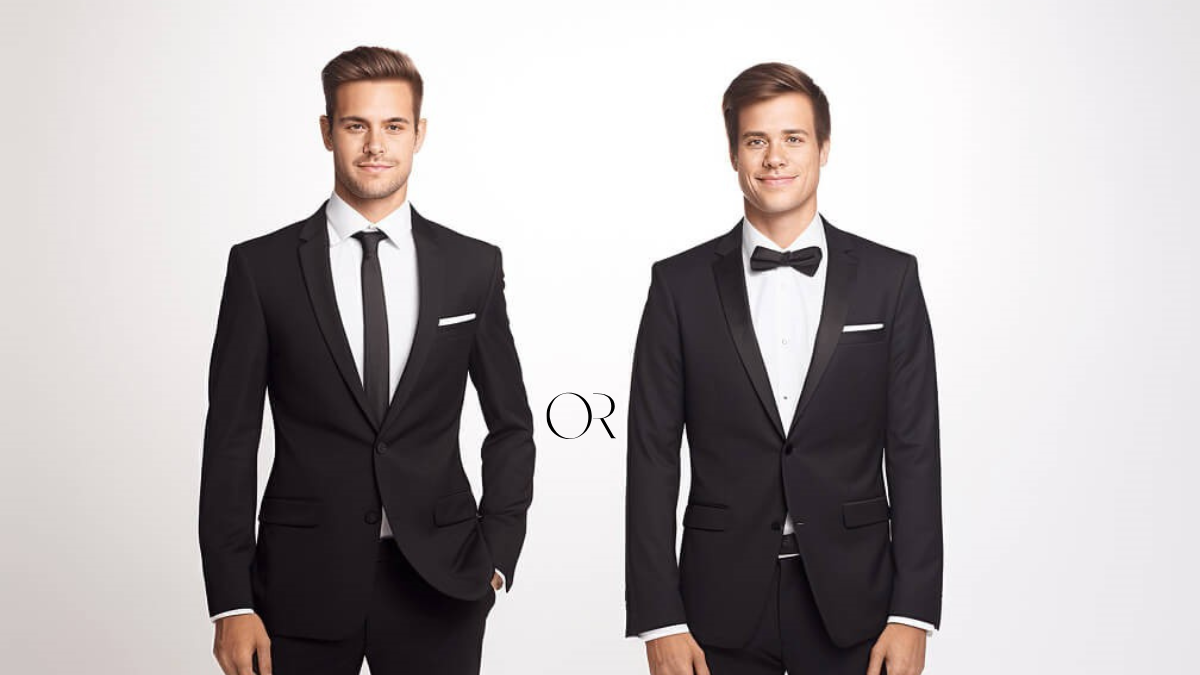 The decision to wear a suit or a tuxedo is almost always determined by the event’s dress code.